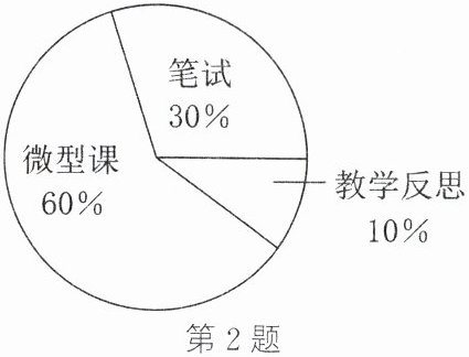 2. 李老师参加本校青年数学教师优质课比赛,笔试得90分,微型课得92分,教学反思得88分.按照如图所示的笔试、微型课、教学反思的权重,李老师的综合成绩为()