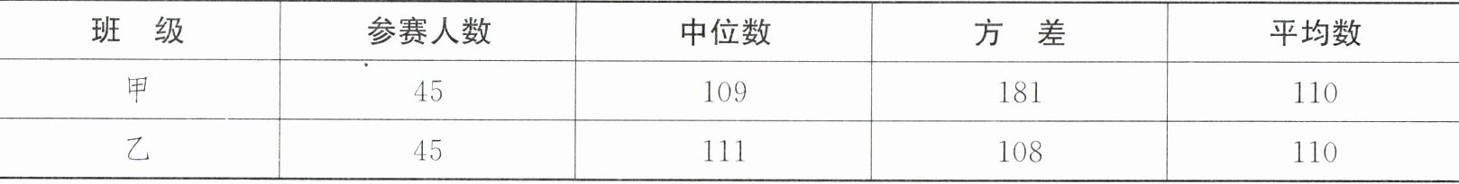 15. 甲、乙两班举行一分钟跳绳比赛,参赛学生每分钟跳绳次数的统计结果如下表: