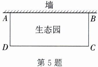 5. (新情境·生态环境)(2023·淮安)为了便于劳动课程的开展,学校打算建一个矩形生态园ABCD(如图),生态园一面靠墙(墙足够长),另外三面用18m长的篱笆围成.生态园的面积能否为40$ m^{2} $? 如果能,请求出AB的长;如果不能,请说明理由.