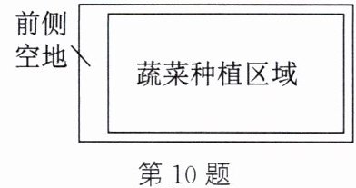 10. 某村计划建设如图所示的矩形蔬菜温室,要求长与宽的比为2:1.在温室内,沿前侧内墙保留3m宽的空地,其他三侧内墙各保留1m宽的通道.当矩形蔬菜温室的长与宽各为多少时,蔬菜种植区域的面积为288$ m^{2} $?