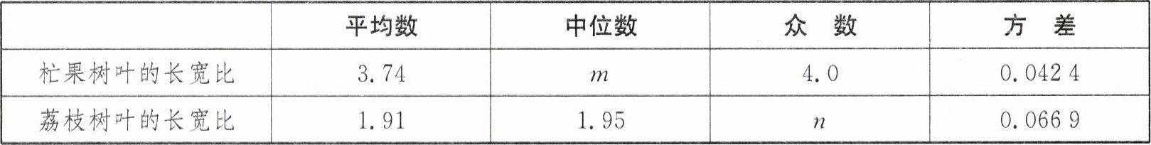 (2)①A同学说:“从树叶的长宽比的方差来看,我认为杧果树叶的形状差别大.”