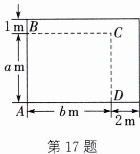 17. (2023·金华)如图所示为一块矩形菜地ABCD,$AB=am,AD=bm$,面积为$s{m}^{2}$,现将边AB的长增加1m,边AD的长增加2m.若有且只有一个a的值,使得到的新矩形菜地的面积为$2sm^{2}$,则s的值为.