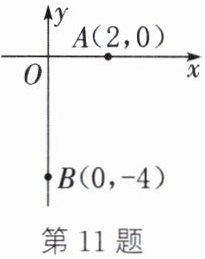 11. 如图,在平面直角坐标系中,以点$A(2,0)$为圆心作圆,使圆经过点$B(0,-4)$.