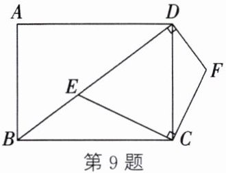 9. (2025·苏州期末改编)如图,在矩形ABCD中,点E在矩形的对角线BD上,连接CE.过点C作$CF⊥CE$,过点D作$DF⊥DE$,DF与CF相交于点F.图中存在组在同一个圆的圆周上的四个点.