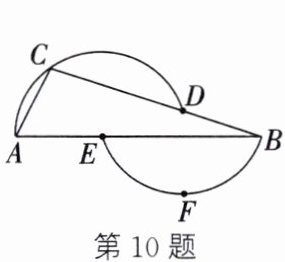 10. 如图,过A、C、D三点的圆的圆心为点E,过B、F、E三点的圆的圆心为点D.如果$∠A=63^{\circ }$,那么$∠B=$$^{\circ }$.