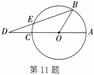 11. 如图,AC是$\odot O$的直径,点B在$\odot O$上(不与点A、C重合),点D在AC的延长线上,连接BD交$\odot O$于点E,$∠AOB=3∠D$.求证:$DE=OB$.