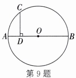 9. 如图,AB是$\odot O$的直径,点C在$\odot O$上,$CD⊥AB$于点D.已知$CD=4,AD=2$,则$\odot O$的半径为.