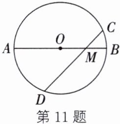 11. 如图,AB是$\odot O$的直径,弦CD交AB于点M,且$OM=CM$.若$\overset{\frown}{AD}=x\overset{\frown}{BC}$,则x的值为.