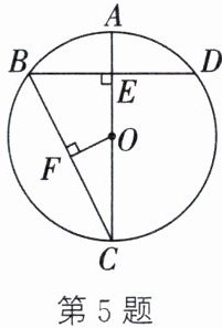 5. 如图,AC是⊙O的直径,弦BD⊥AO于点E,连接BC,过点O作OF⊥BC于点F.若BD=8 cm,AE=2 cm,求⊙O的半径及OF的长.