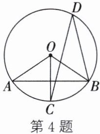 4. (2024·重庆B卷改编)如图,AB是$\odot O$的弦,$OC⊥AB$交$\odot O$于点C,D是$\odot O$上一点,连接BD、CD.若$∠D=28^{\circ}$,则$∠OAB$的度数为.