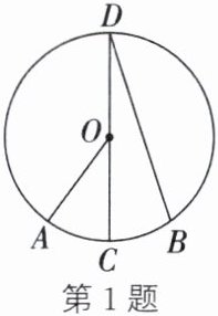 1. (2024·云南)如图,CD是$\odot O$的直径,点A、B在$\odot O$上.若$\overset{\frown}{AC}=\overset{\frown}{BC},∠AOC=36^{\circ}$,则$∠D$的度数为 ()