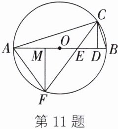11. (2024·安徽)如图,$\odot O$是$△ABC$的外接圆,D是直径AB上一点,$∠ACD$的平分线交AB于点E,交$\odot O$于另一点F,$FA=FE$.