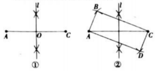 ① 作线段AC的垂直平分线l,交线段AC于点O;
