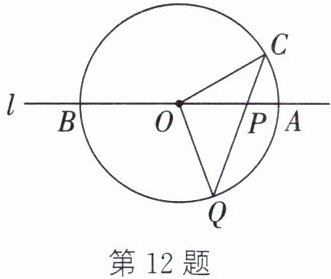 12. 如图,直线$l$经过$\odot O$的圆心,且交$\odot O$于$A$、$B$两点,点$C$在$\odot O$上,且$\angle AOC=30^{\circ}$,$P$是直线$l$上的一个动点(不与圆心$O$重合),$CP$与$\odot O$相交于另一点$Q$,连接$QO$.若$QP=QO$,求$\angle OCP$的度数.