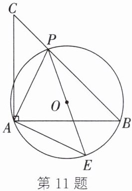 11. 如图,在等腰直角三角形$ABC$中,$\angle BAC=90^{\circ}$,$P$是斜边$BC$上一点(不与点$B$、$C$重合),$PE$是$\triangle ABP$的外接圆$\odot O$的直径,连接$AP$、$AE$.