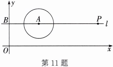 11. 如图,O为坐标原点,点A的坐标为$(4,3),\odot A$的半径为2,过点A作直线$l// x$轴,交y轴于点B,点P在直线l上运动.