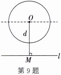 9. 如图,给定一个半径为2的圆,圆心O到水平直线l的距离为d,即$OM=d$.我们把圆上到直线l的距离等于1的点的个数记为m.如$d=0$时,l为经过圆心O的一条直线,此时圆上有4个到直线l的距离等于1的点,即$m=4$.