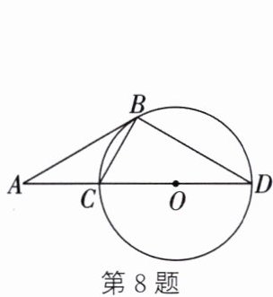8. (新考法·条件开放题)如图,CD是$\odot O$的直径,BD是$\odot O$的弦,延长DC到点A,使$∠ABD=120^{\circ }$,连接BC.有下列条件:①$AC=BC$;②$AC=OC$;③$OC=BC$;④$AB=BD$.从中添加一个条件,能使AB是$\odot O$的切线的为(填序号).