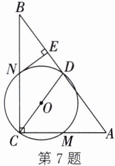 7. 如图,在$Rt△ABC$中,$∠ACB=90^{\circ }$,CD是斜边AB上的中线,以CD为直径的$\odot O$分别交AC、BC于点M、N,过点N作$NE⊥AB$,垂足为E,则NE与$\odot O$的位置关系是()