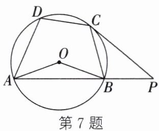 7. (2024·包头)如图,四边形ABCD是⊙O的内接四边形,点O在四边形ABCD内部,过点C作⊙O的切线交AB的延长线于点P,连接OA、OB.若∠AOB=140°,∠BCP=35°,则∠ADC的度数为.