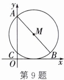 9. 如图,在平面直角坐标系中,以点M(2,3)为圆心、AB为直径的圆与x轴相切,与y轴交于点A、C,则点B的坐标是.