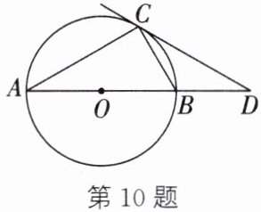 10. (2024·苏州期末改编)如图,AB为⊙O的直径,C为⊙O上一点,过点C作⊙O的切线,与AB的延长线交于点D.