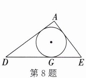 8. (2024·绵阳改编)如图,在△ADE中,∠DAE=90°,△ADE的内切圆与DE相切于点G,当EG=$\sqrt{5}$-1,DG=$\sqrt{5}$+1时,$\frac{AE}{AD}$的值为.