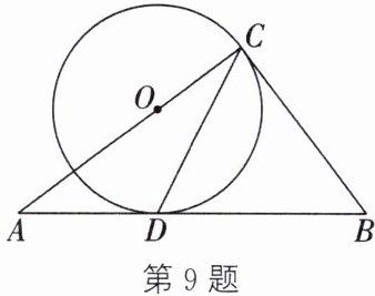 9. (2024·通辽)如图,在△ABC中,∠ACB=90°,O为AC边上一点,以点O为圆心,OC为半径作圆与AB相切于点D,连接CD.