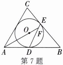7. (2023·仙桃)如图,在△ABC中,∠ACB=70°,△ABC的内切圆⊙O与AB、BC分别相切于点D、E,连接DE,延长AO,交DE于点F,则∠AFD=°.