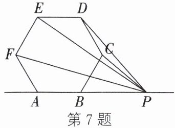7. (易错题)如图所示为一种警报装置的示意图,电子屏幕上有一个正六边形ABCDEF,点P沿直线AB从右向左移动,当出现点P与正六边形六个顶点中的至少两个顶点距离相等时,就会发出警报,则直线AB上会发出警报的点P有个.