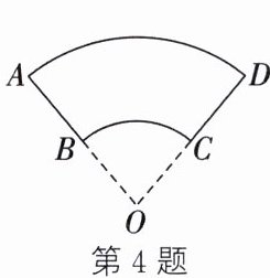4. (新考向·传统文化)(2025·昆山期末)中国瓦当的发展历程悠久, 其艺术风格和功能随着历史时期的变化而演变. 如图, 现有一瓦当, 它的一面是扇形的一部分, 其中两边 $AB$、$CD$ 所在直线构成的夹角 $\angle AOD = 80^{\circ}$, 点 $O$ 是扇形所在圆的圆心, $AO = DO = 20\ cm$, $BO = CO = 10\ cm$, 则该瓦当此面的面积为 $cm^2$ (结果保留 $\pi$).