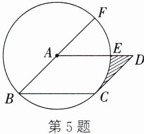 5. 如图, 在 $□ ABCD$ 中, 以点 $A$ 为圆心、$AB$ 为半径的圆恰好与 $CD$ 相切于点 $C$, 交 $AD$ 于点 $E$, 延长 $BA$, 交 $\odot A$ 于点 $F$. 若 $\overset{\frown}{EF}$ 的长为 $\frac{\pi}{2}$, 求图中阴影部分的面积.