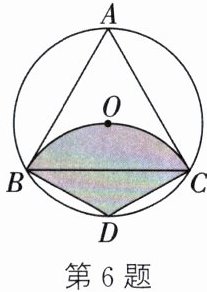 6. (2024·河南)如图, $\odot O$ 是边长为 $4\sqrt{3}$ 的等边三角形 $ABC$ 的外接圆, $D$ 是 $\overset{\frown}{BC}$ 的中点, 连接 $BD$、$CD$. 以点 $D$ 为圆心, $BD$ 为半径在 $\odot O$ 内画弧, 则涂色部分的面积为 ()