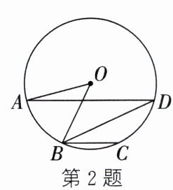 2. (2024·青岛)如图, $A$、$B$、$C$、$D$ 是 $\odot O$ 上的点, 半径 $OA = 3$, $\overset{\frown}{AB} = \overset{\frown}{CD}$, $\angle DBC = 25^{\circ}$, 连接 $AD$, 则扇形 $AOB$ 的面积为 ()