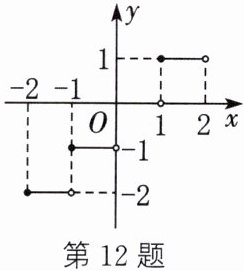 12. (新考法·新定义题)定义$[x]$为不超过实数$x$的最大整数,如$[1.8] = 1$,$[-1.4] = -2$,$[-3] = -3$. 函数$y = [x]$在$-2\leqslant x<2$范围内的图像如图所示,试求当$-2\leqslant x<2$时,$[x] = \frac{1}{2}x^2$的$x$的值.