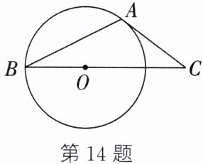 14. 如图,在$\triangle ABC$中,$AC = 2,BC = 4$,点O在BC上,以OB为半径的圆与AC相切于点A.设D是边BC上的动点,当$\triangle ACD$为直角三角形时,AD的长为.