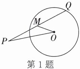 1. (2024·苏州工业园区期中)如图,$P$是$\odot O$外一点,$Q$是$\odot O$上的动点,线段$PQ$的中点为$M$,连接$OP$、$OM$.若$\odot O$的半径为$4$,$OP=8$,则线段$OM$长的最小值是 ()