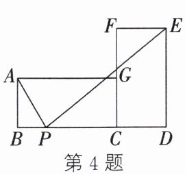 4. 如图,矩形$ABCG(AB\lt BC)$与矩形$CDEF$全等,点$B$、$C$、$D$在同一条直线上,$\angle APE$的顶点$P$在线段$BD$上移动,使$\angle APE$为直角的点$P$的个数是 ()