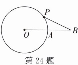 24. 如图,⊙O的半径为3cm,B为⊙O外一点,OB交⊙O于点A,AB=OA,动点P从点A出发,以πcm/s的速度在⊙O上按逆时针方向运动一周回到点A后停止.当点P运动的时间为s时,直线BP与⊙O相切.