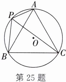 25. 如图,⊙O的半径为1,A、P、B、C是⊙O上的四个点,∠APC=∠CPB=60°.