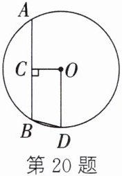 20. 如图,AB是⊙O的弦,OC⊥AB,垂足为C,OD//AB,交⊙O于点D,OD=2OC,则∠ABD的度数为.