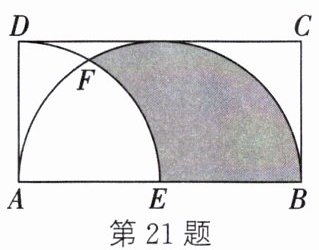 21. (整体思想)(2024·资阳)如图,在矩形ABCD中,AB=4,AD=2.以点A为圆心,AD为半径作弧交AB于点E,再以AB为直径作半圆,与$\overset{\frown}{DE}$交于点F,则图中涂色部分的面积为.