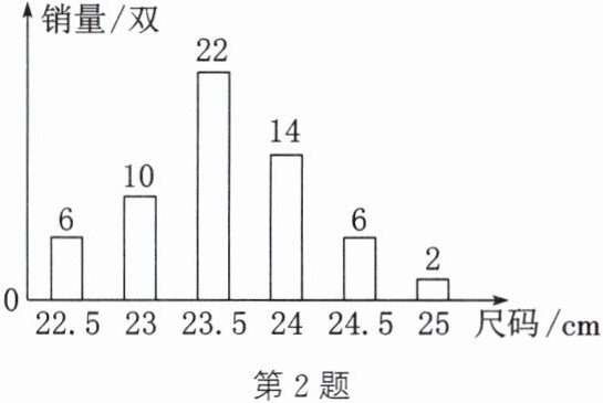 2.(2024·绥化改编)某女鞋专卖店在一周内销售了某种女鞋60双,对这批鞋子尺码及销量进行统计,得到条形统计图(如图)。根据图中信息,建议下次进货量最多的女鞋尺码是()
