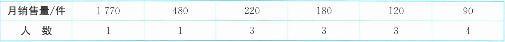 4.(教材P109习题3.2第4题变式)某公司销售部有营业员15人,该公司为了调动营业员的积极性,决定实行目标管理,根据目标完成的情况对营业员进行适当的奖励。为了确定一个适当的月销售目标,公司有关部门统计了这15人某月的销售量如下表: