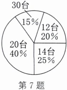7. 某电脑公司销售部为了制定下个月的销售计划,对20名销售员本月的销售量进行了统计,绘制成如图所示的统计图,则这20名销售员本月销售量的平均数、中位数、众数依次为台、台、台。