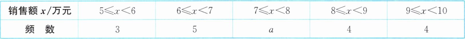 (2)若将月销售额不低于7万元确定为销售目标,则有名员工获得奖励.