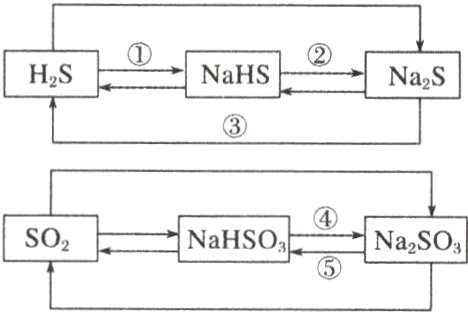 ①H₂S + NaOH = NaHS + H₂O ②NaHS + NaOH = Na₂S + H₂O ③Na₂S + 2HCl = 2NaCl + H₂S↑ ④NaHSO₃ + NaOH = Na₂SO₃ + H₂O ⑤Na₂SO₃ + H₂O + SO₂ = 2NaHSO₃