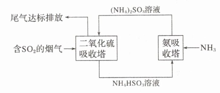 (2)$NH_{3}+HSO_{3}^{-}\xlongequal{\;\;}NH_{4}^{+}+SO_{3}^{2 - }$(或$NH_{3}\cdot H_{2}O+HSO_{3}^{-}\xlongequal{\;\;}NH_{4}^{+}+SO_{3}^{2 - }+H_{2}O$)