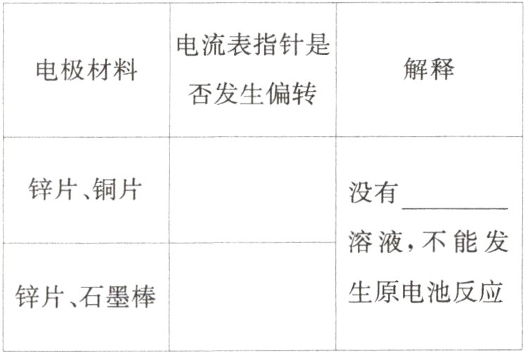 (1)用导线将电流表分别与锌片、铜片相连接,使锌片与铜片接触,观察电流表指针是否发生偏转;用石墨棒代替铜片进行上述实验。解释所观察到的现象。