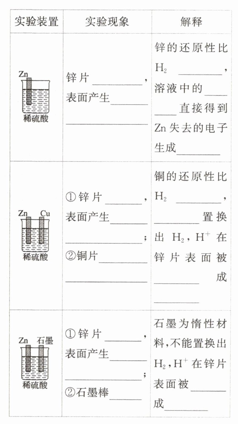 @@溶解 无色气泡 强 H⁺ H₂ 溶解 无色气泡 表面无明显现象 弱 不能 还原 H₂ 溶解 无色气泡 表面无明显现象 还原 H₂